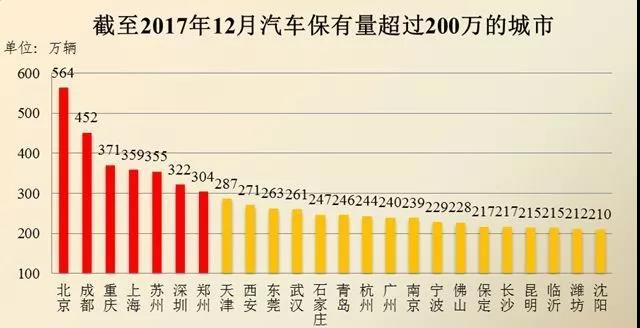 从图表中可以看出,中国的汽车市场仍处于高速增长期。从分布情况看,全国有53个城市的汽车保有量超过百万辆,24个城市超200万辆,7个城市超300万辆,分别是北京、成都、重庆、上海、苏州、深圳和郑州。