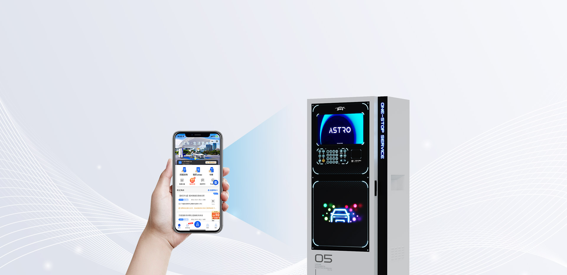 启动模式多样化,新增“主动扫码”,适应多种需求。账号登录可智能控制外部洗车照明开启,内置维修灯,方便夜间设备维护。